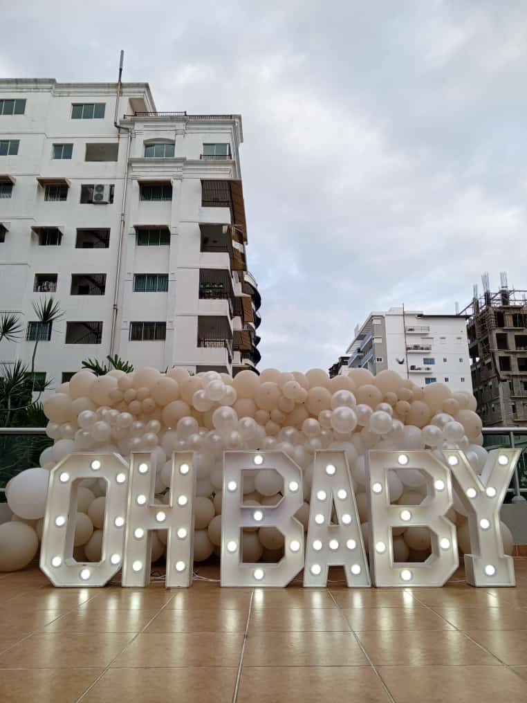 Letrero de OH BABY en letras de madera con luces de 34¨