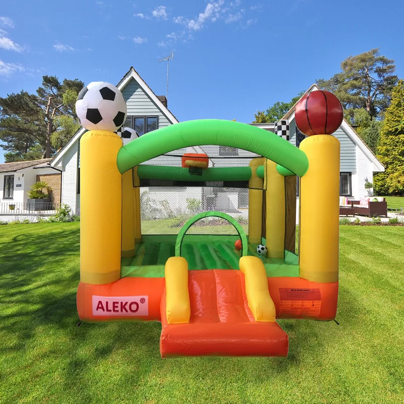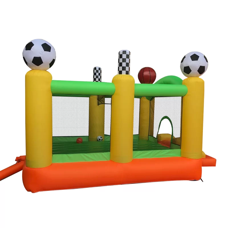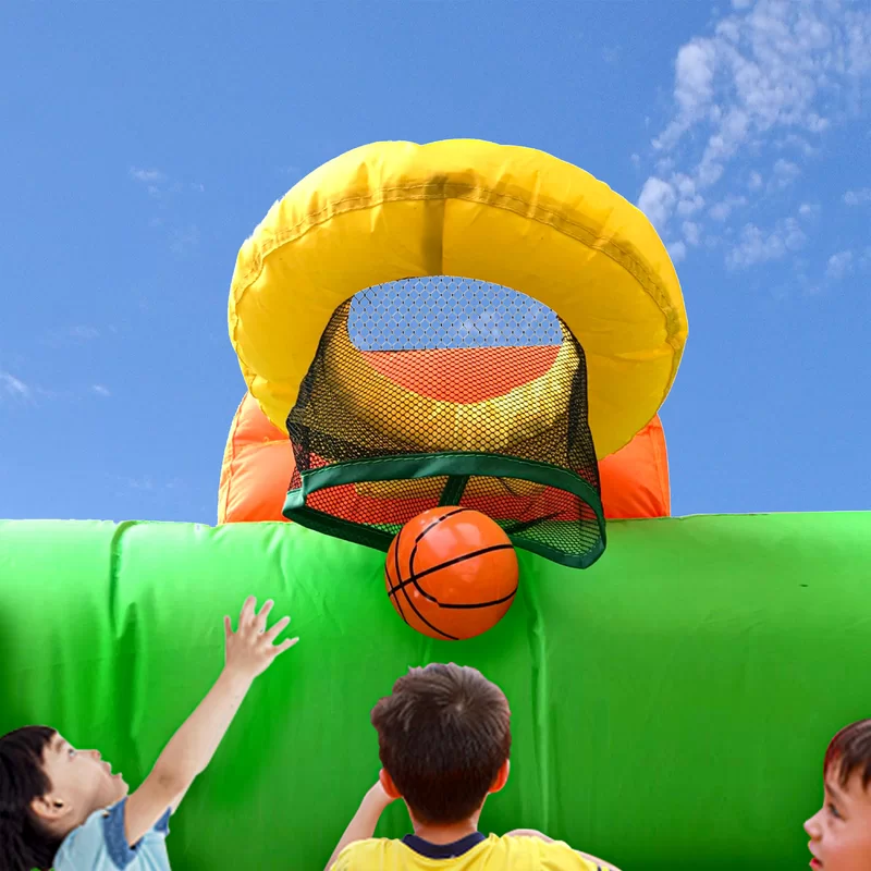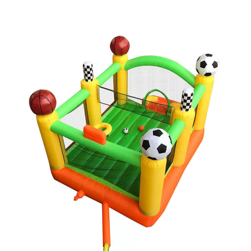 Castillo con tres áreas del desarrollo infantil, baloncesto, voleibol y futbol. Los niños/as pueden jugar tanto como quieran.