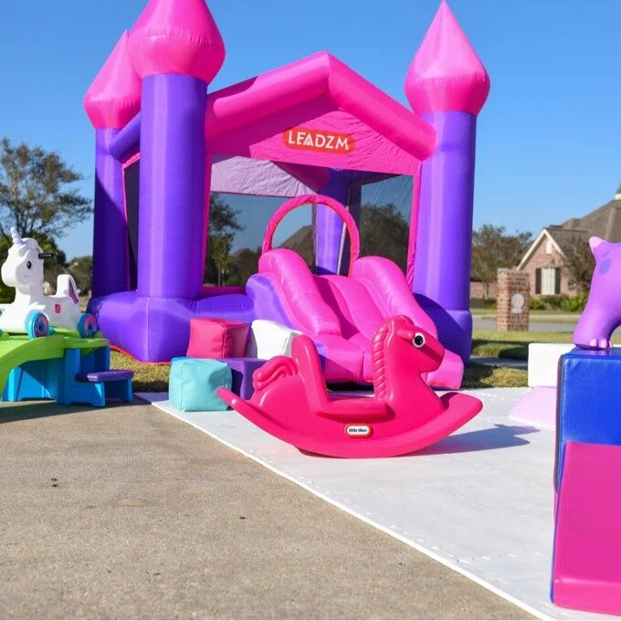 Este castillo es simple, coqueto y diferente, util para una diversión personalizada con la pequeña de la casa, por tal motivo su uso es para niñas de 2 años en adelante. Con una vista transparente para visualizar todo lo que sucede dentro, provoca la seguridad de cada uno de los padres que usan este inflable.