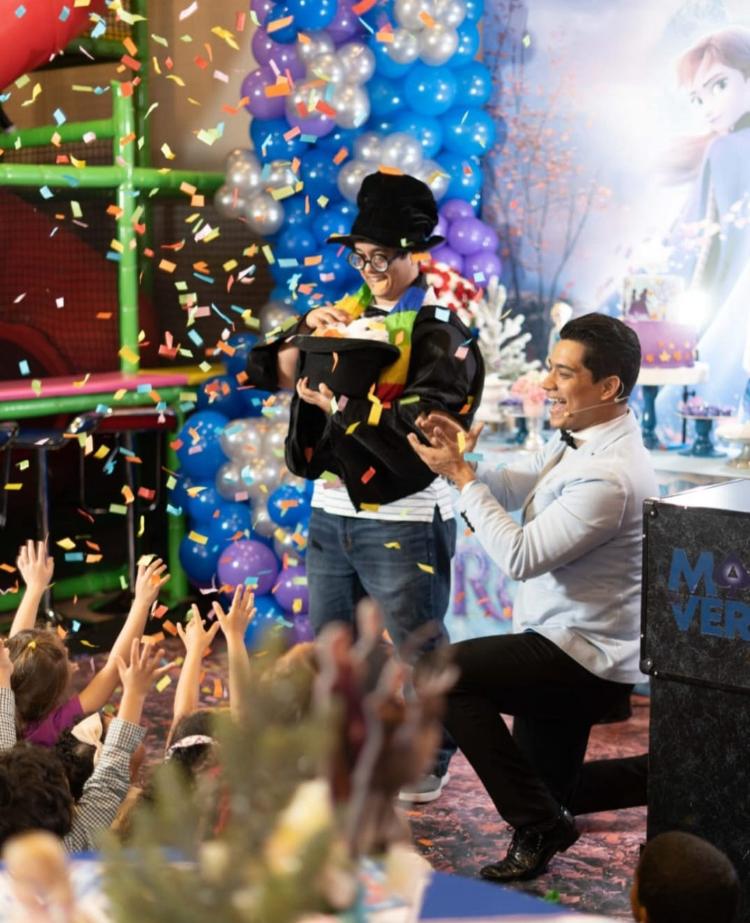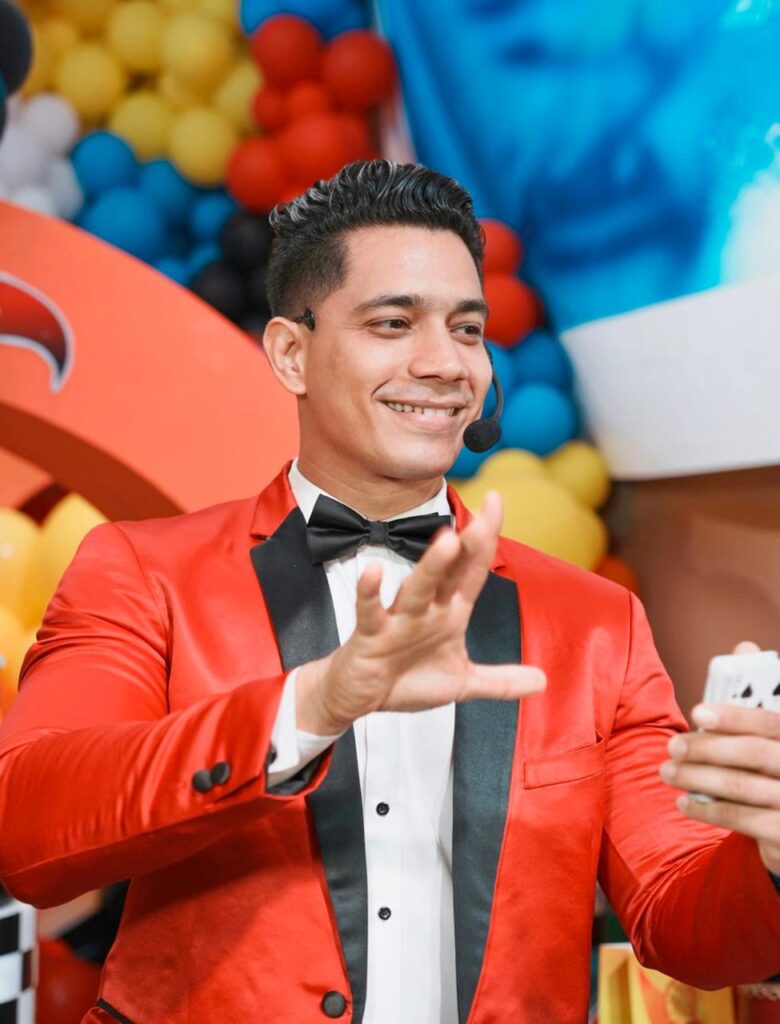 Durante el show, el mago combina rutinas musicales e interactivas para crear una experiencia inolvidable, haciendo participar al público y manteniéndolo al borde de su asiento. ¡Diversión garantizada! 🎶🪄