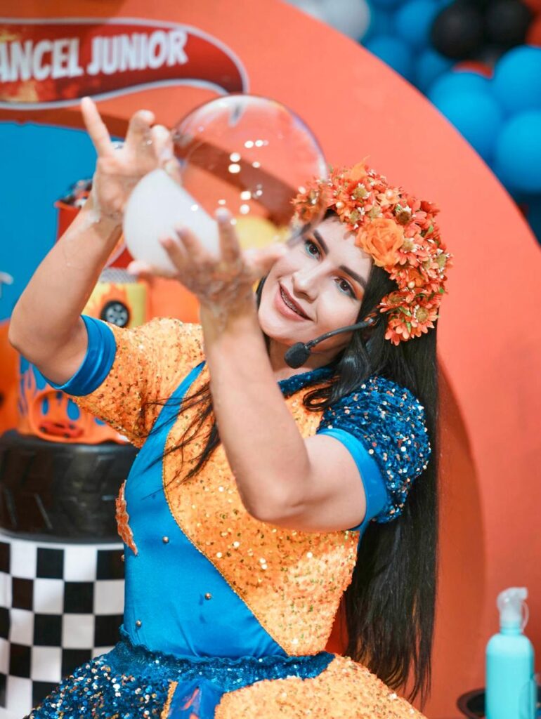 ¡Sorprende a todos con un acto de burbujas que hará volar la imaginación de los más pequeños y de los adultos también! Durante el show, nuestra artista creará burbujas de todos los tamaños y formas, llevando la magia y el asombro al siguiente nivel. 🎈💫