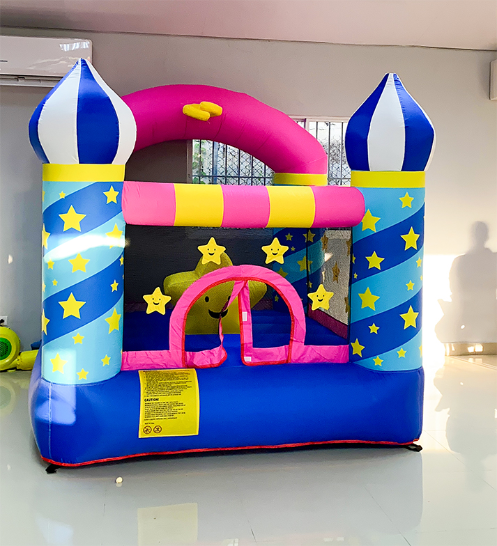 Ideal para niños de 1 año hasta 3 años de edad. El inflable viene con dispositivo en cada columna para colocar música que los niños pueden cambiar con cada toque. Su tamaño es de