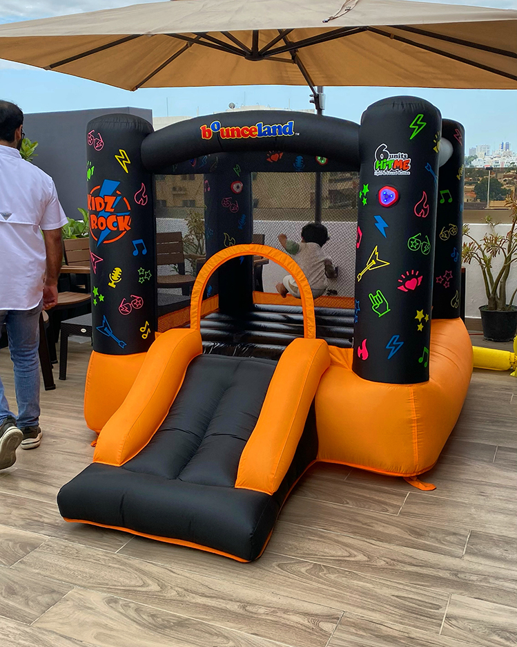 🔌 Incluye turbina de aire para mantener el inflable funcionando durante todo el evento.