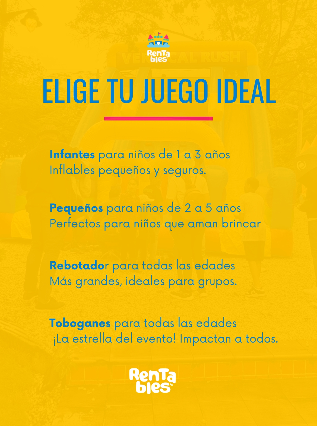 Los inflables tienen categorias y utilidad de uso desde su fabricación, cada renglón tiene su diversión. Escoge la que se adapte a tu necesidad.