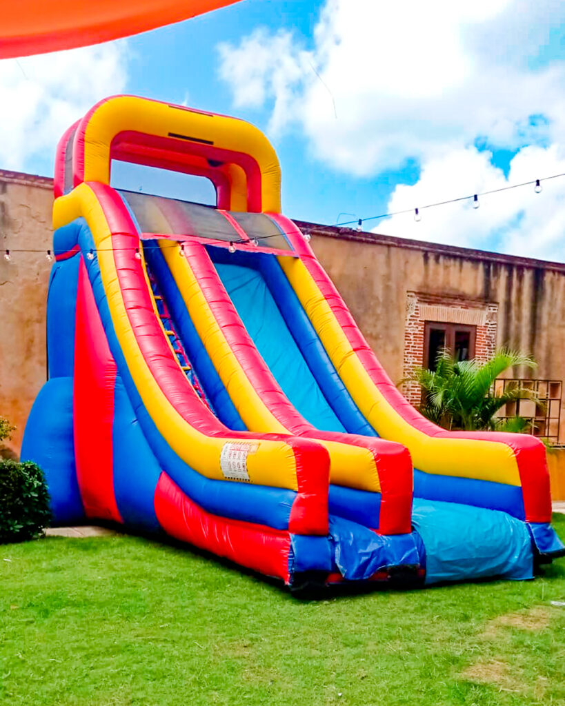Nuestro Tobogán Inflable Gigante es la atracción estrella de cualquier evento. Su gran altura y diseño colorido lo convierten en el favorito de niños y adultos, ideal para actividades escolares, cumpleaños y eventos familiares al aire libre.